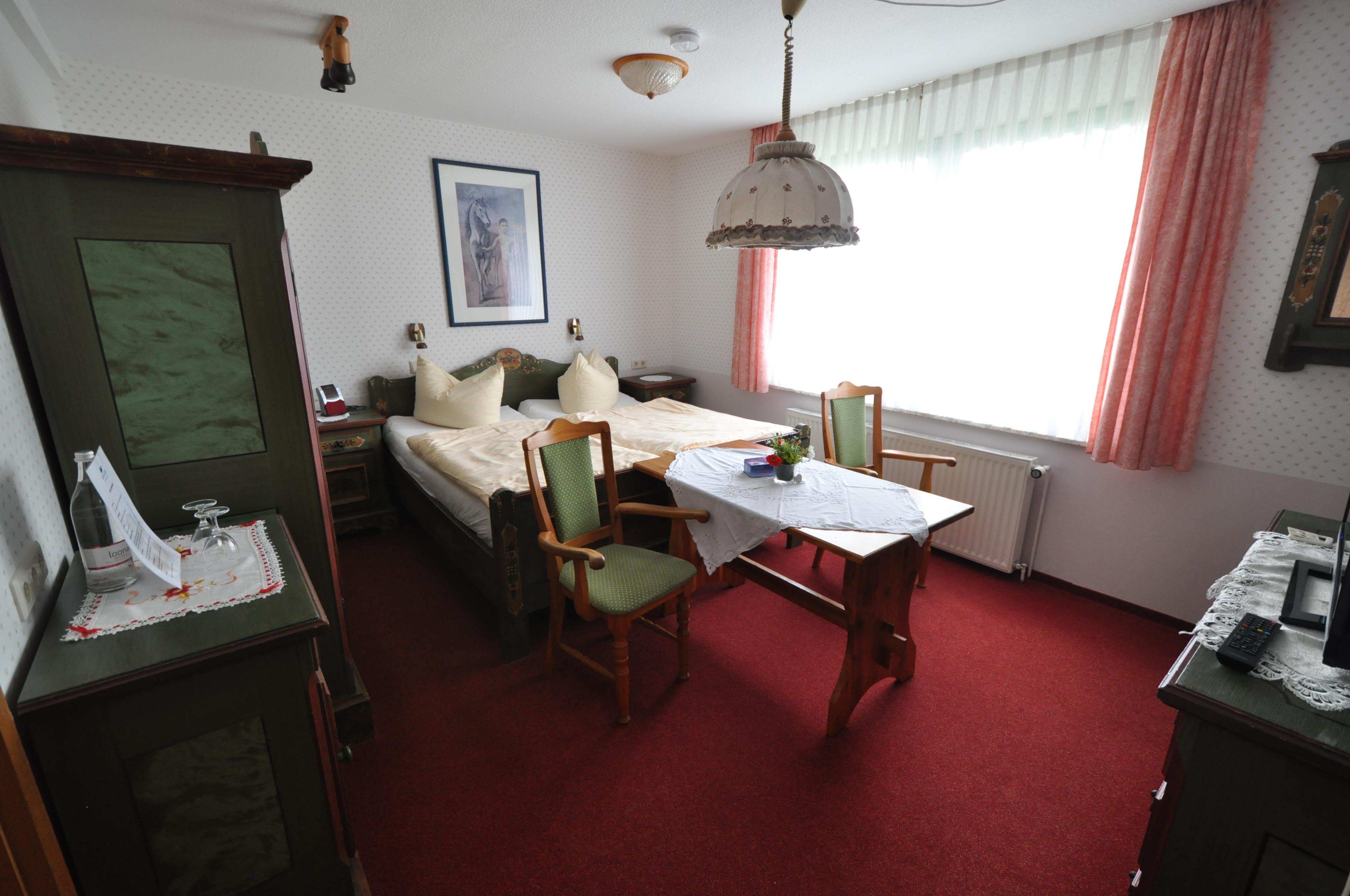 Alle gemütlich liebevoll möblierten Zimmer sind mit modernem Bad, Fernseher, Telefon und weiteren Annehmlichkeiten ausgestattet. Morgens erwarten wir Sie mit einem Frühstück, das bestimmt keine Wünsche offenlassen wird. Da kein Zimmer dem anderen gleicht, empfehlen wir Ihnen bei besonderen Wünschen direkt mit uns Kontakt aufzunehmen.